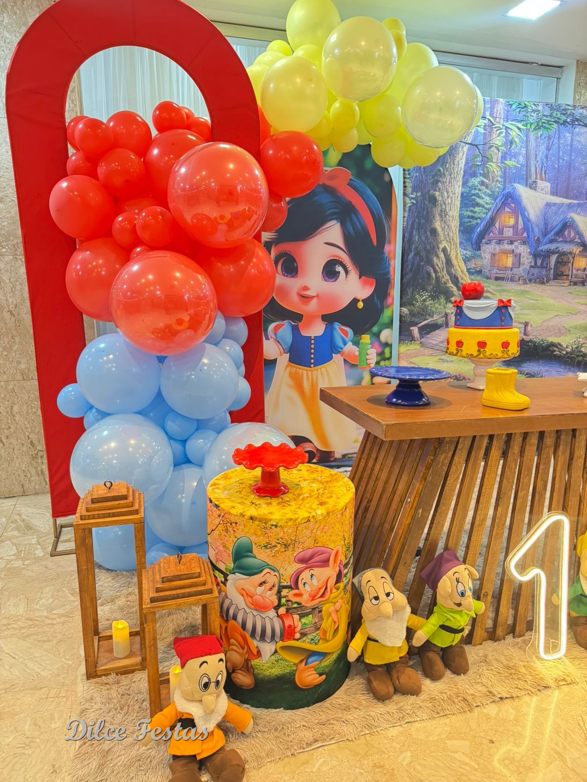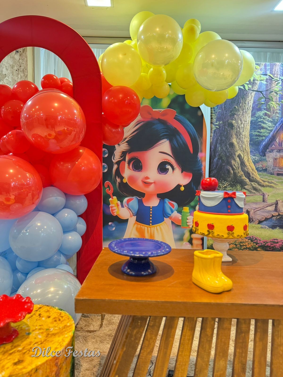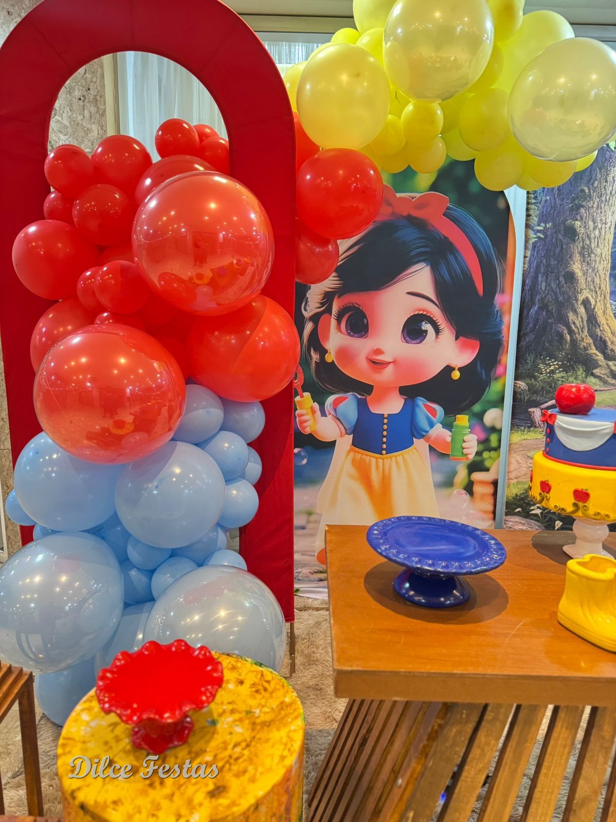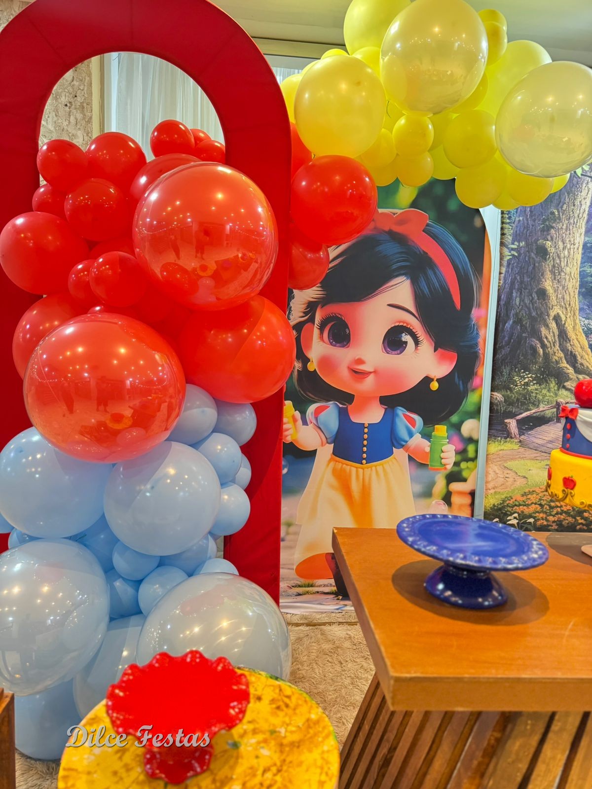 1 Aninho Branca de Neve Baby Painel Oval com Portal Álbum III – Trabalho em Balões com Arco Orgânico