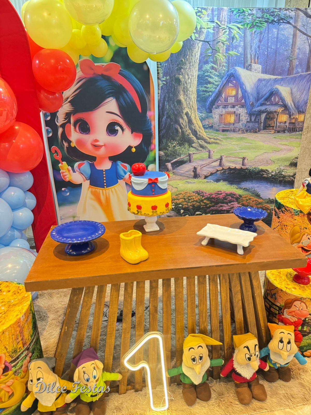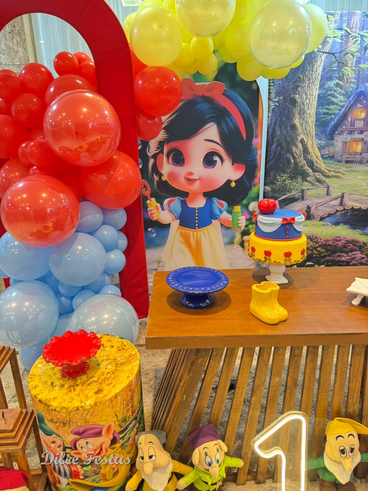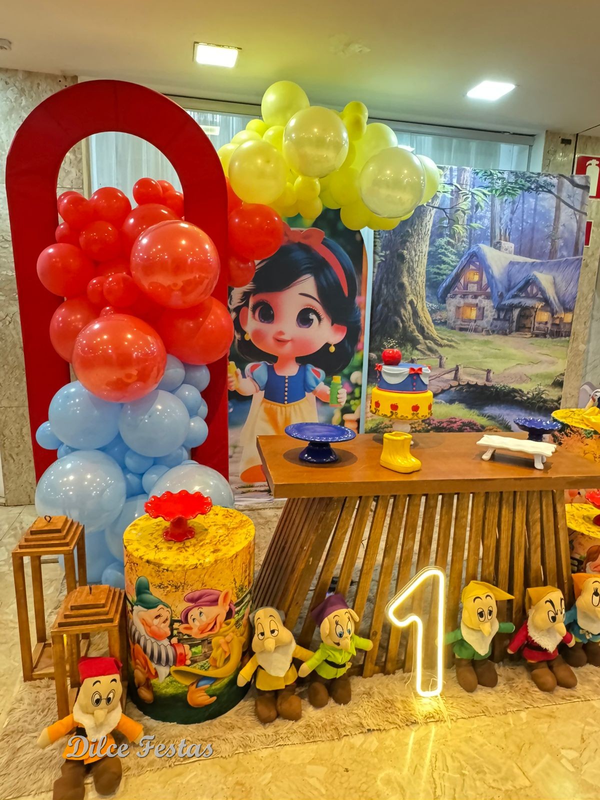 1 Aninho Branca de Neve Baby Painel Oval com Portal Álbum III – Trabalho em Balões com Arco Orgânico
