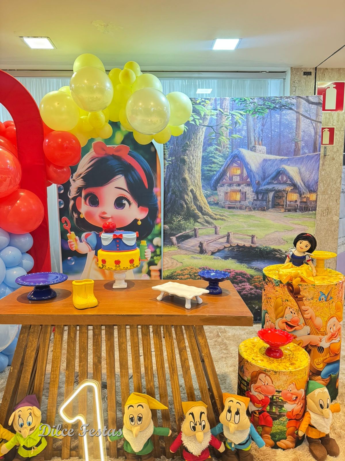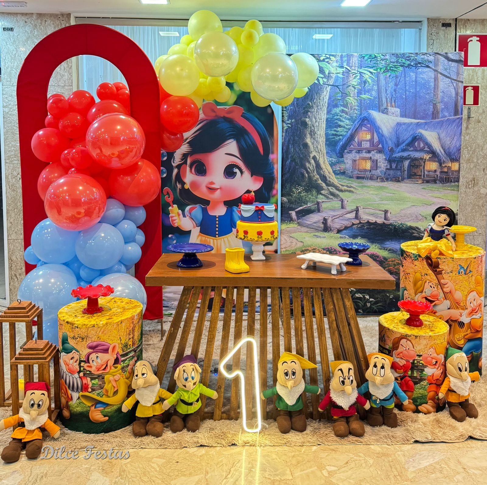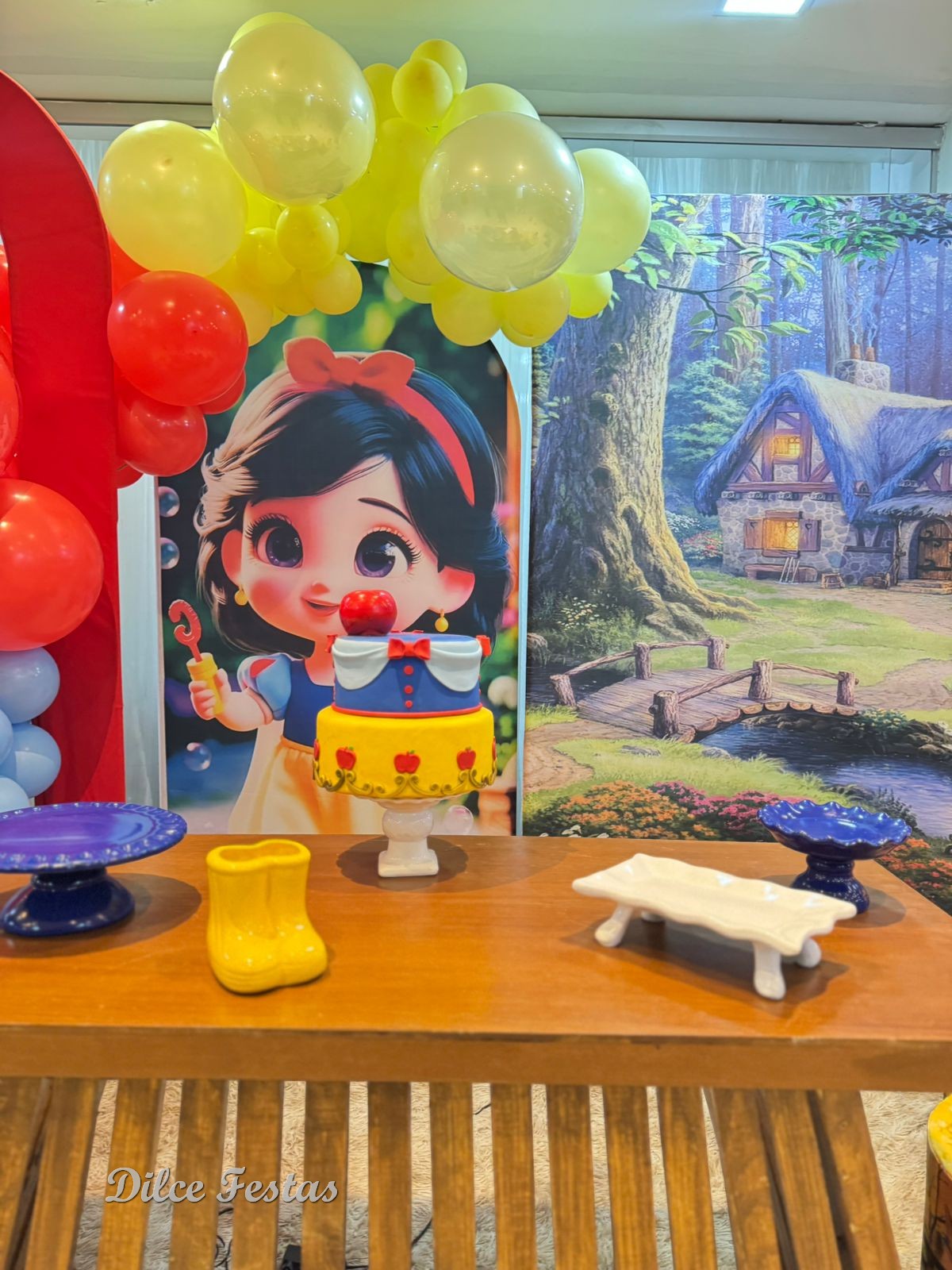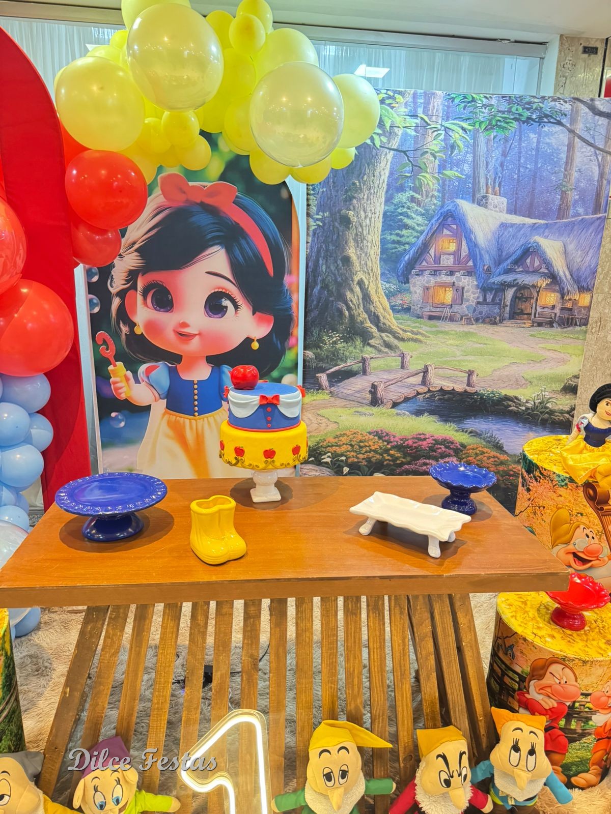 1 Aninho Branca de Neve Baby Painel Oval com Portal Álbum III – Trabalho em Balões com Arco Orgânico