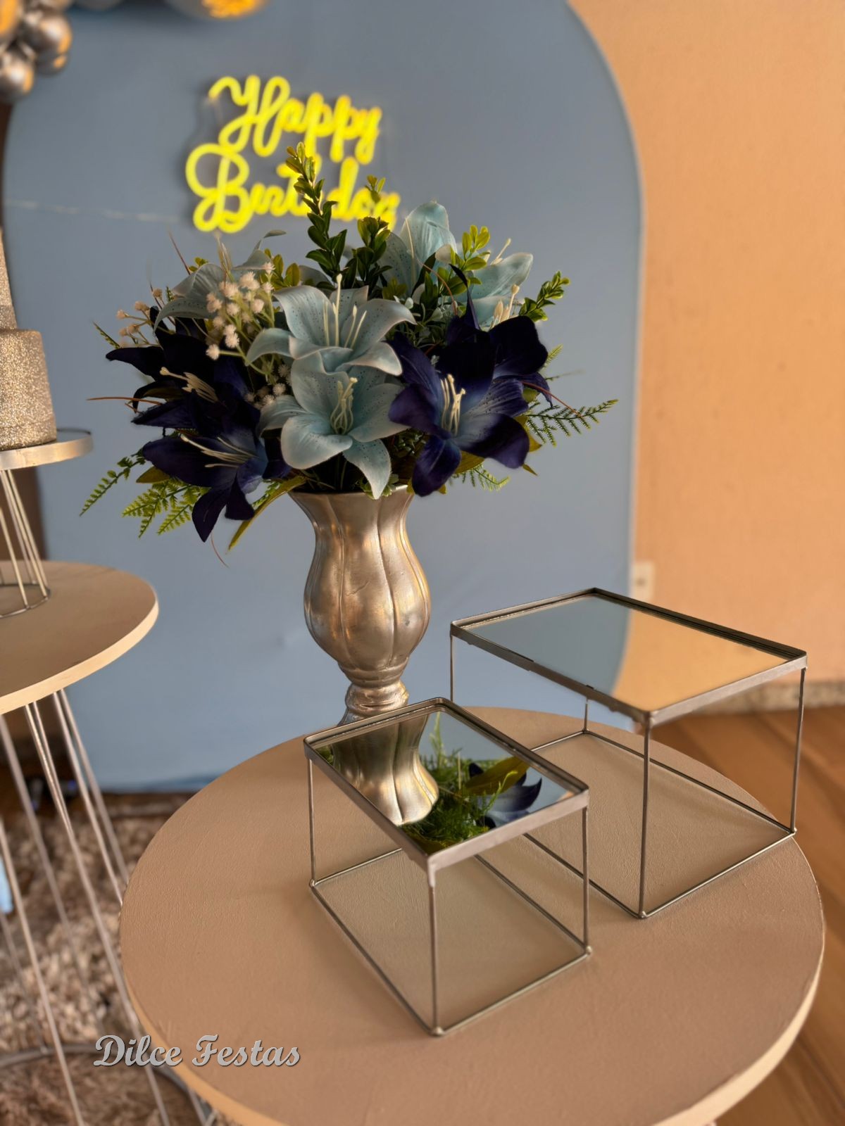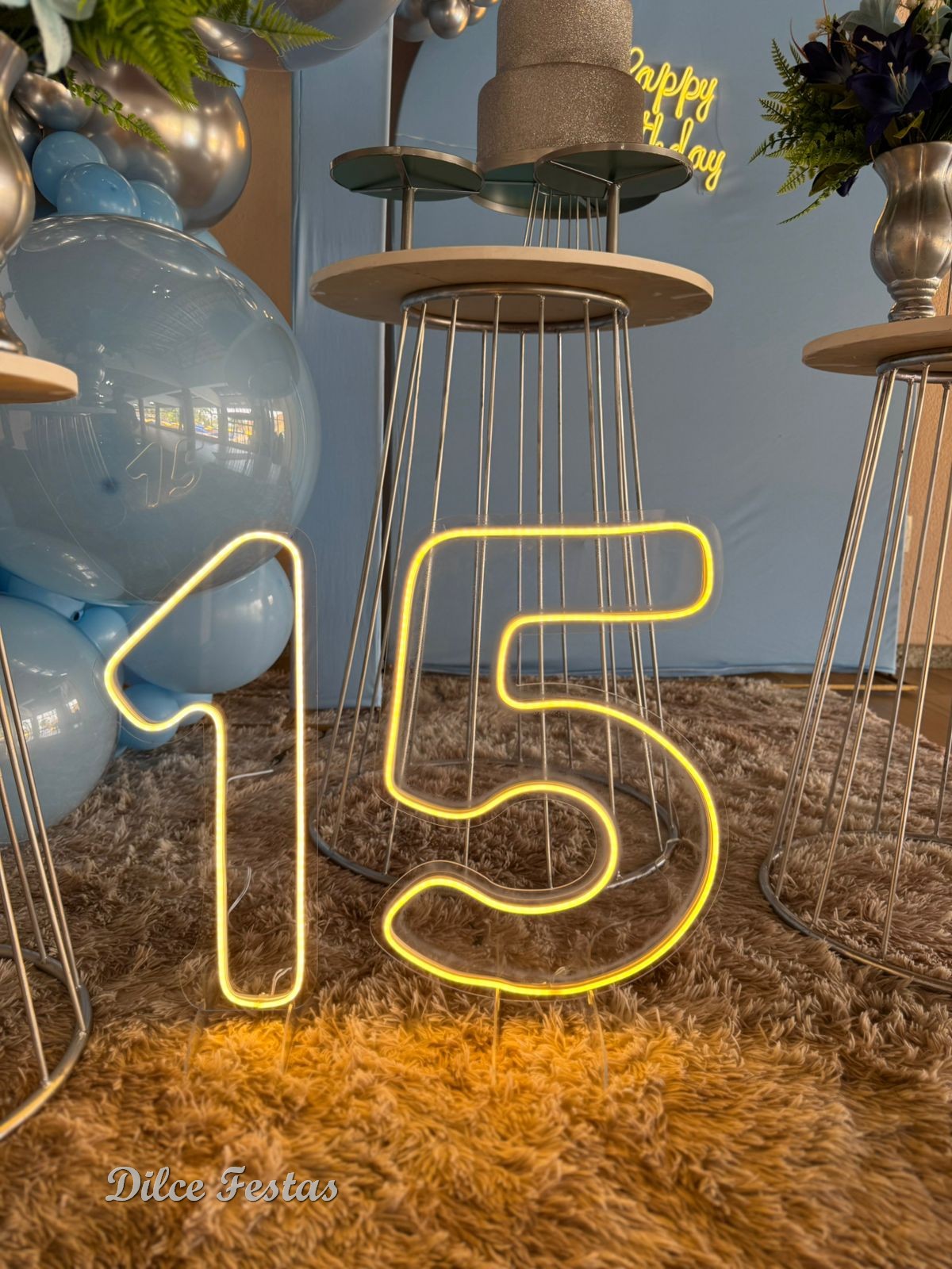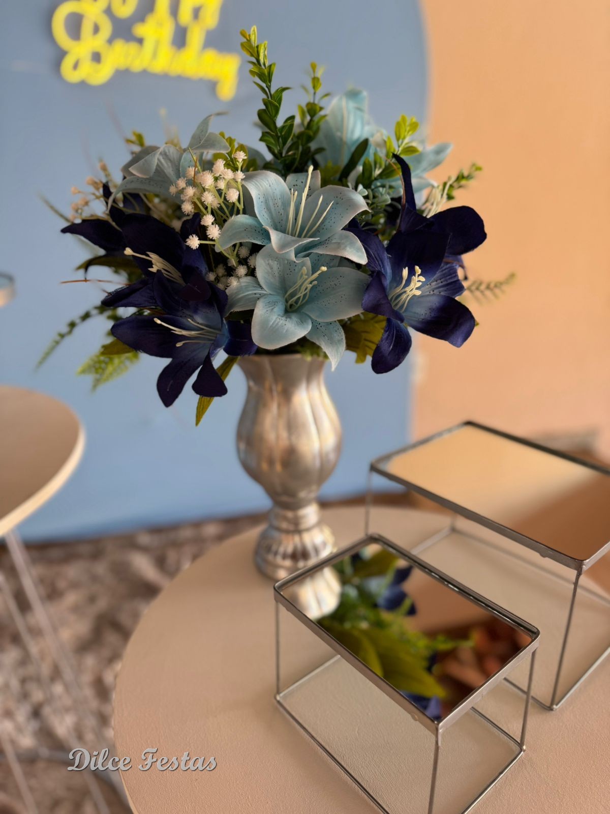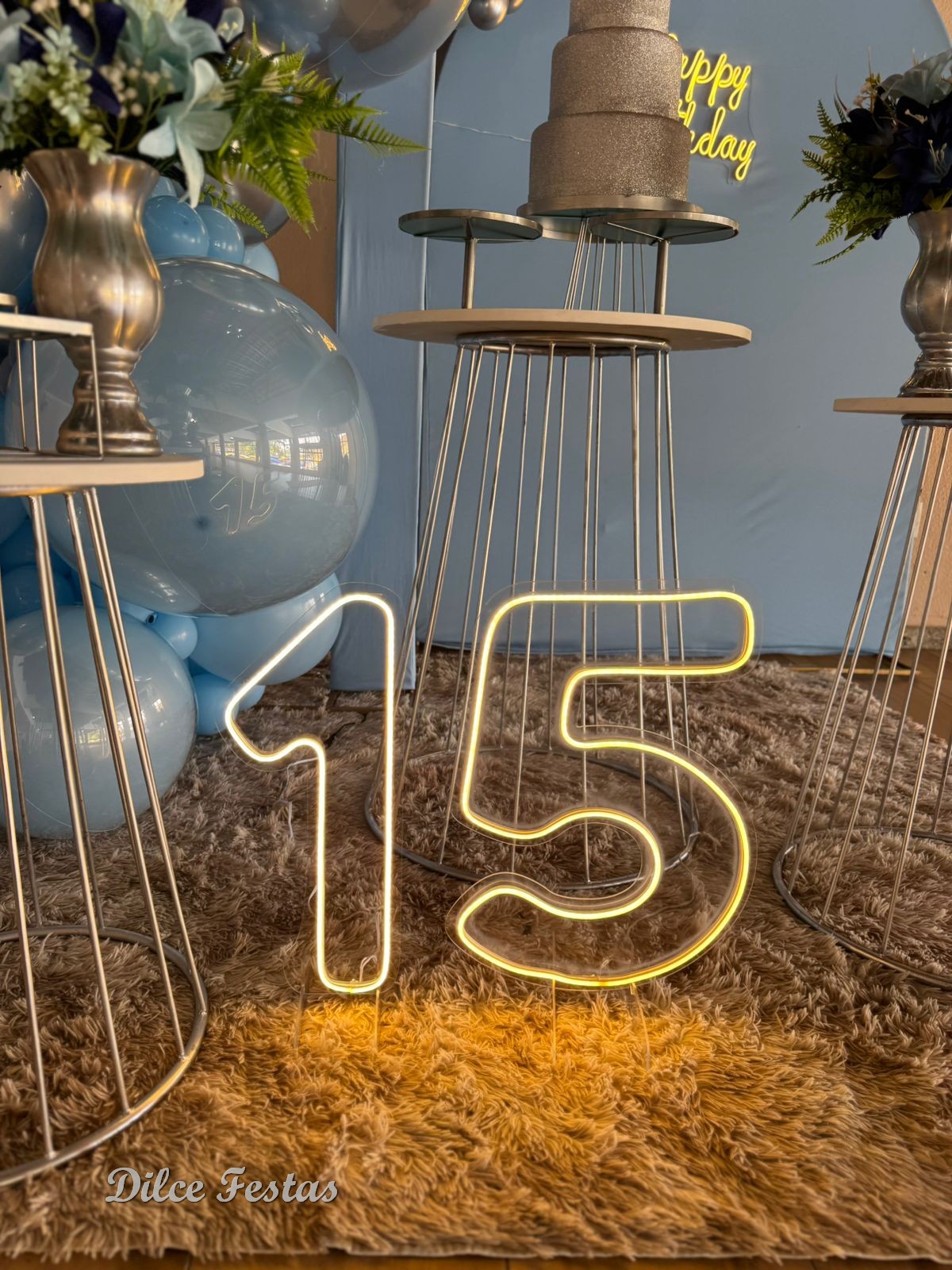 15 Anos – Adulto – Azul Claro E Prata – Trabalho em Balões com Arco Orgânico