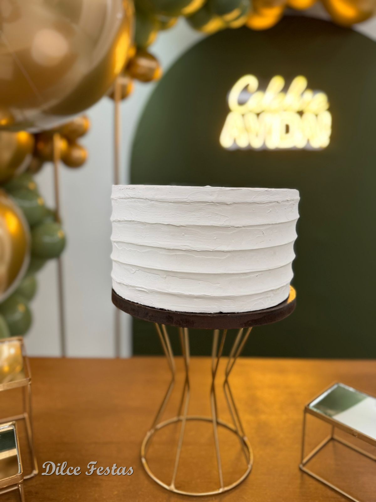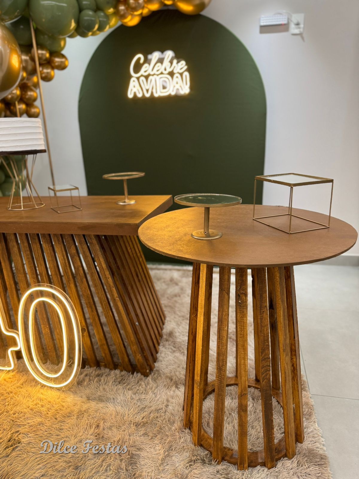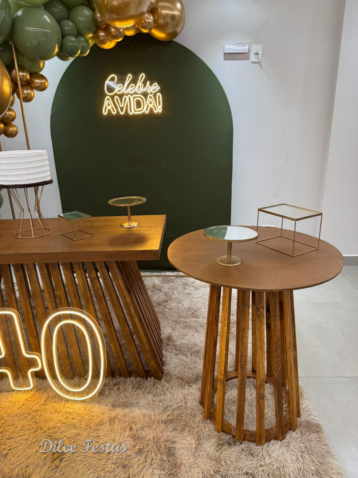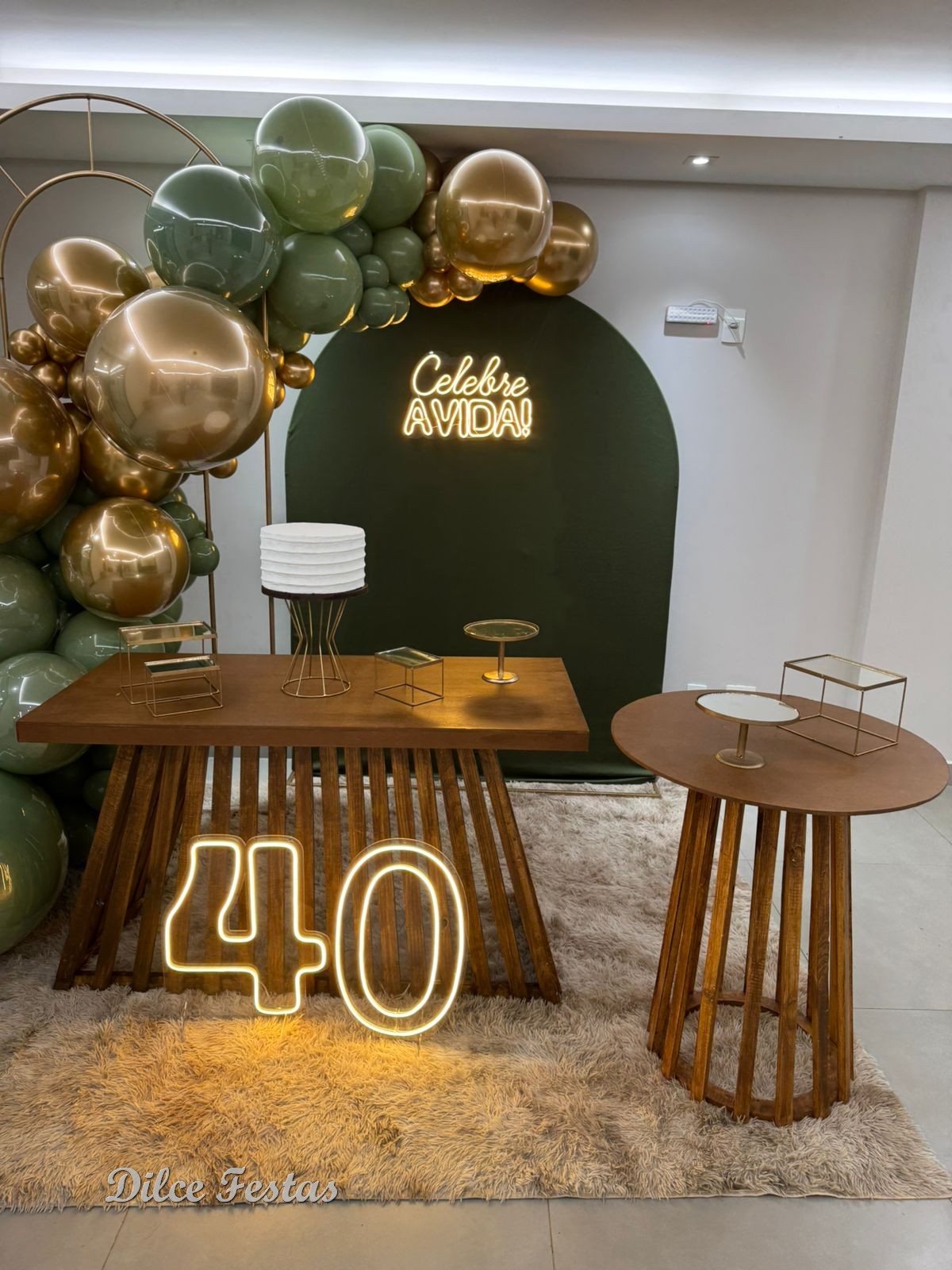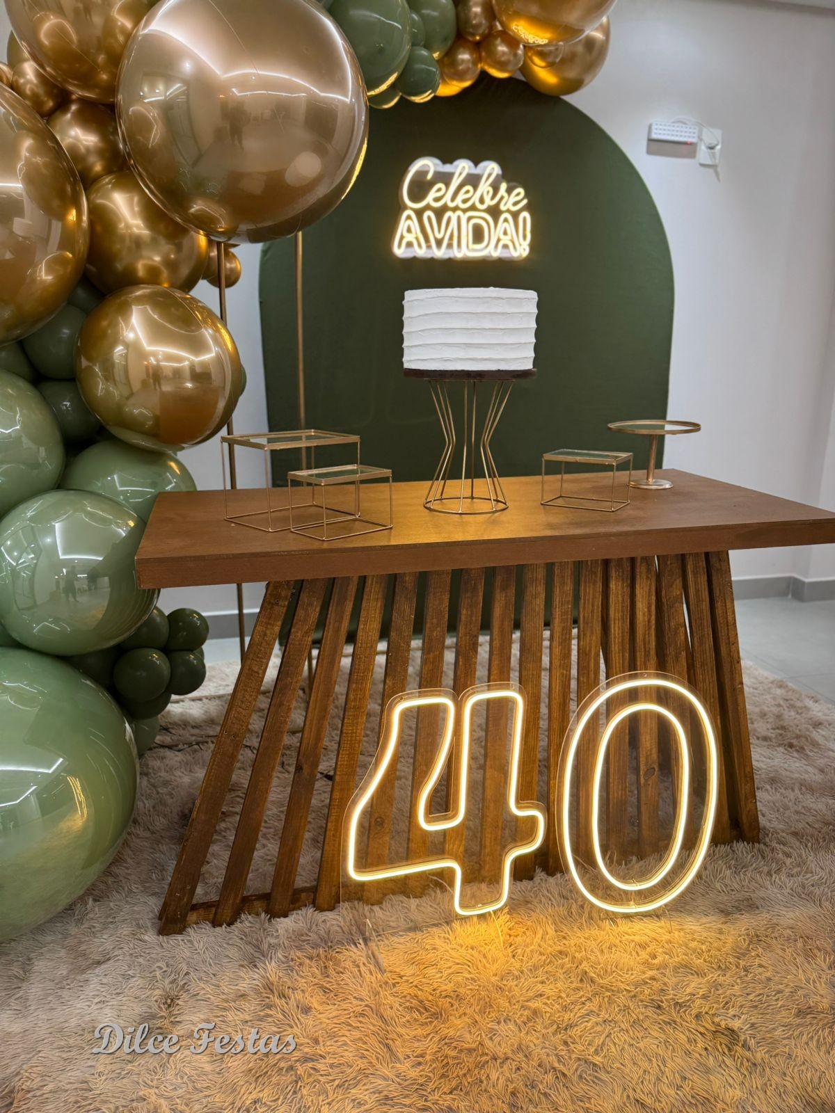 40 Anos – Adulto – Verde Eucalipto e Dourado – Trabalho em Balões com Arco Orgânico