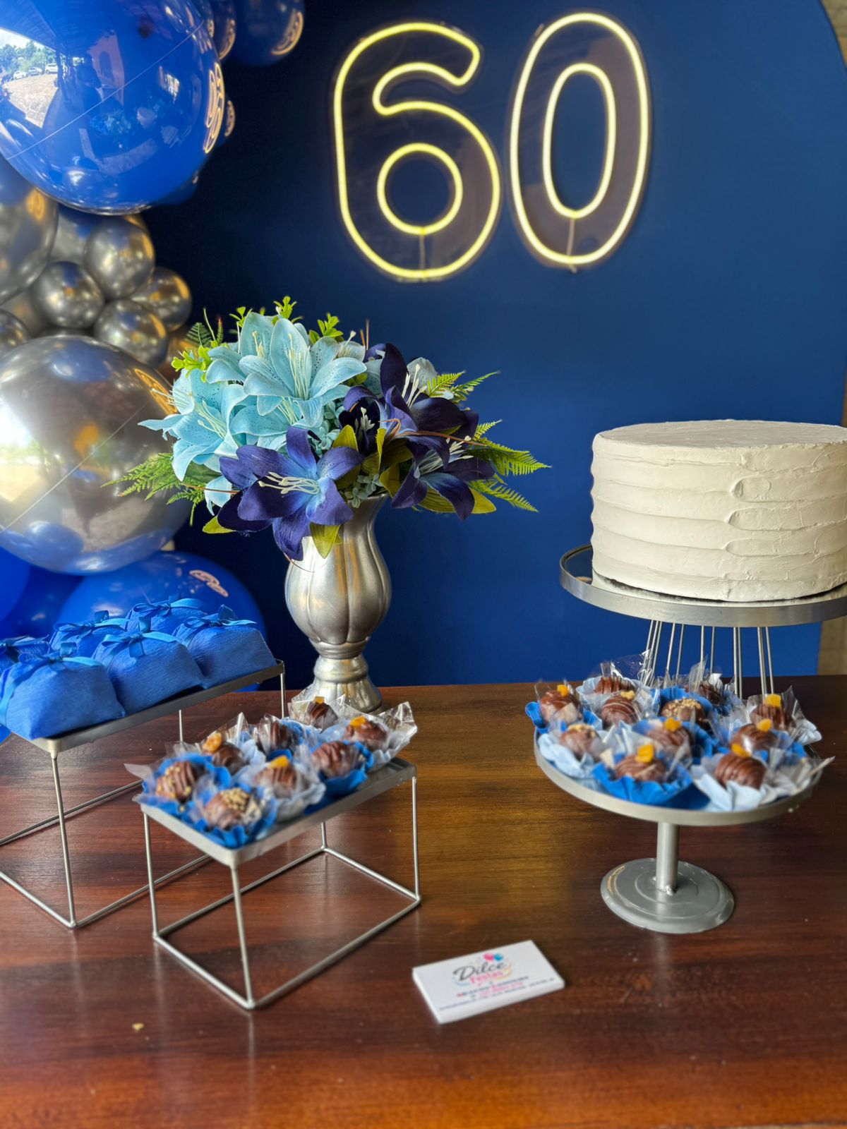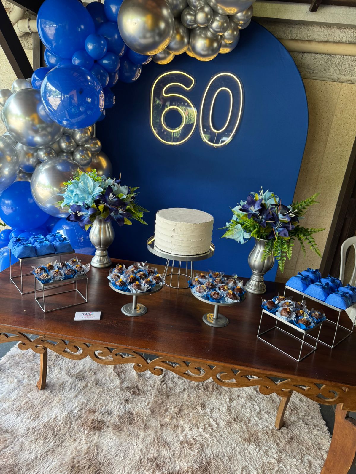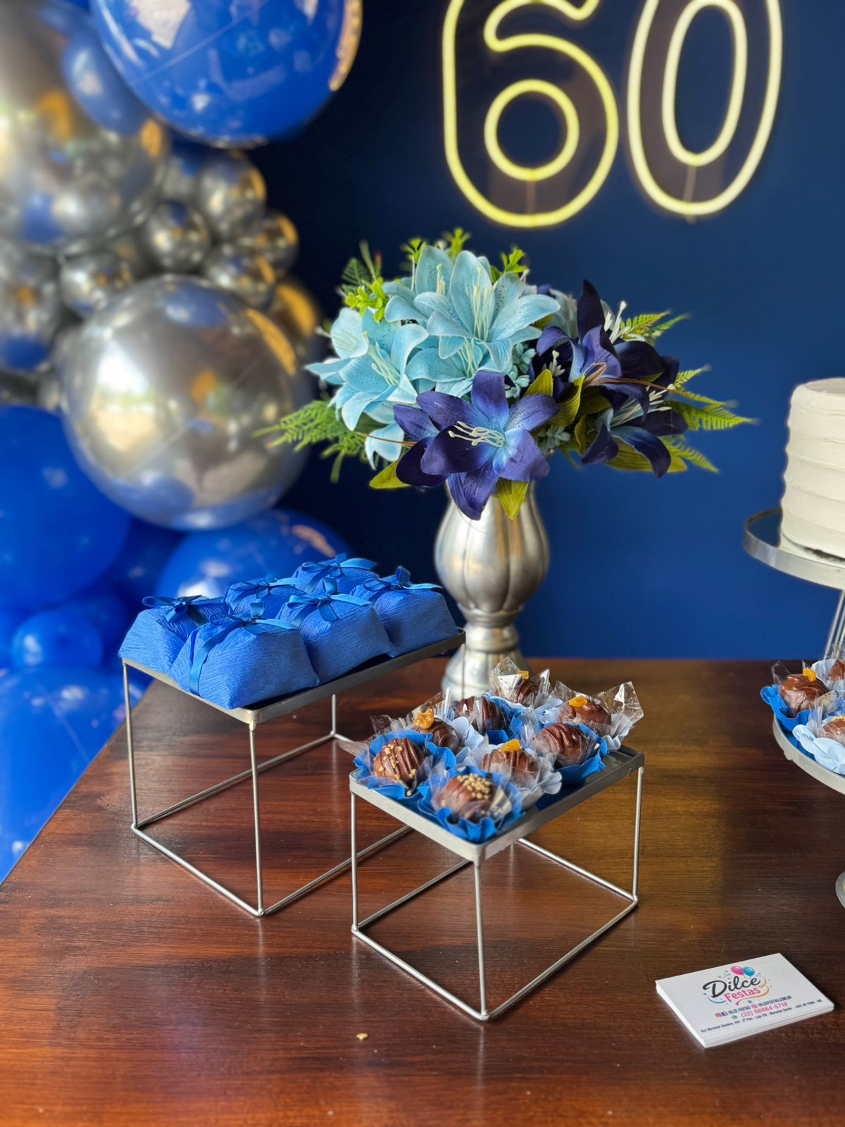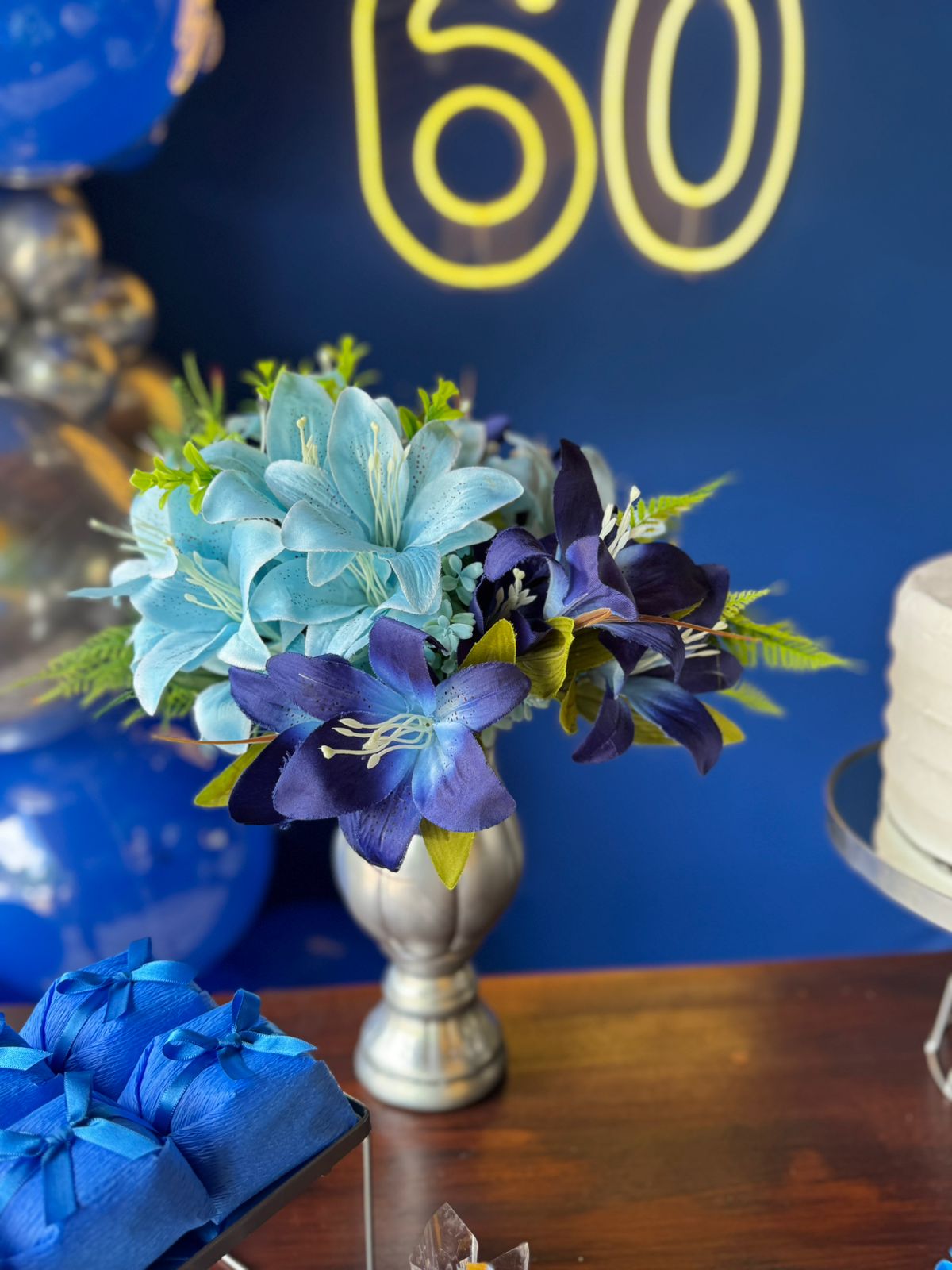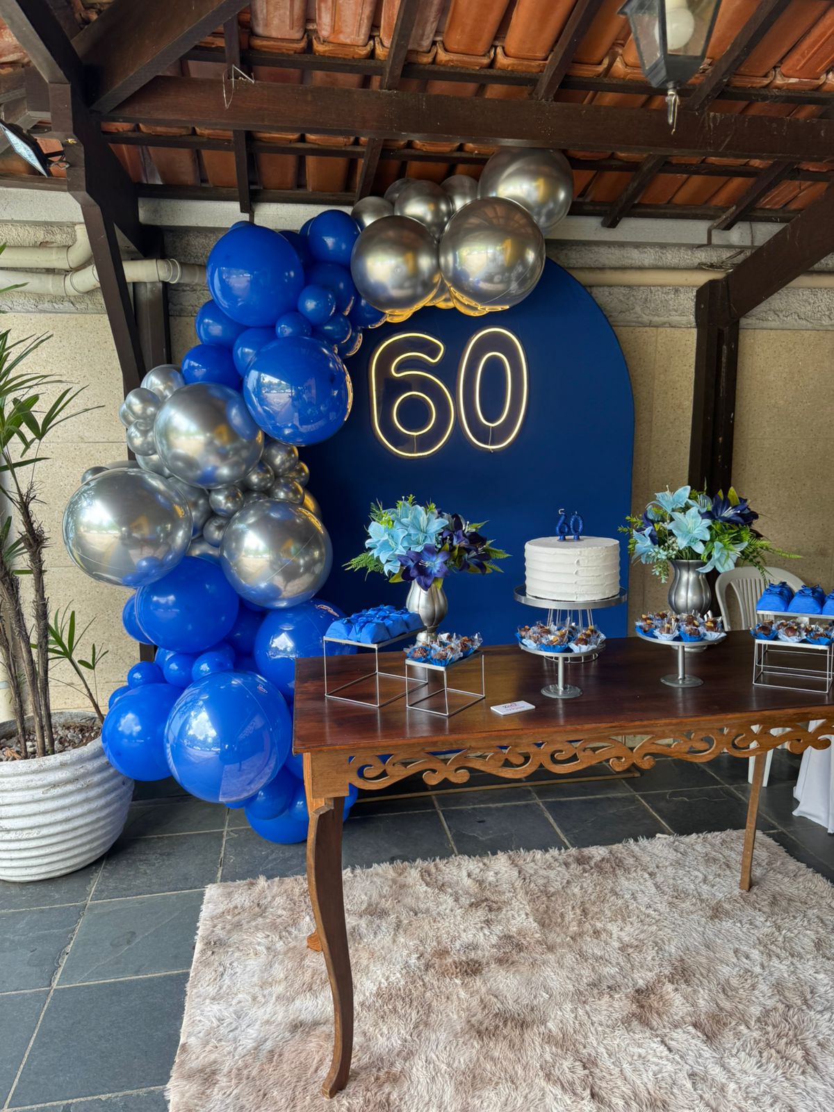 60 Anos Azul Royal e Prata – Adulto – Decoração em Balões com Arco Orgânico