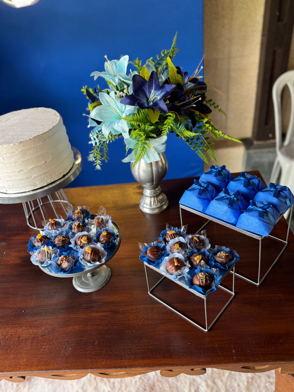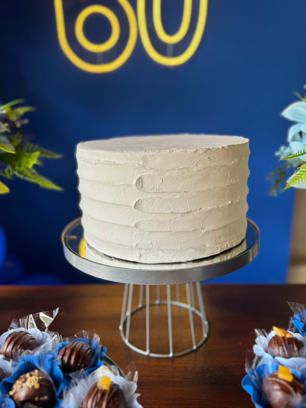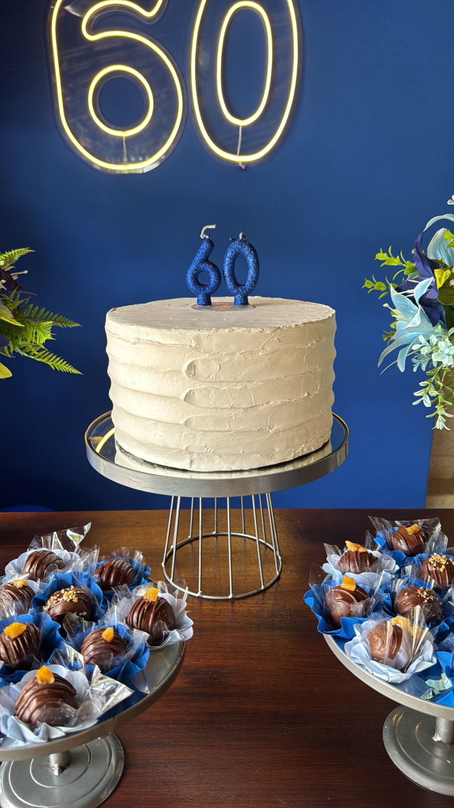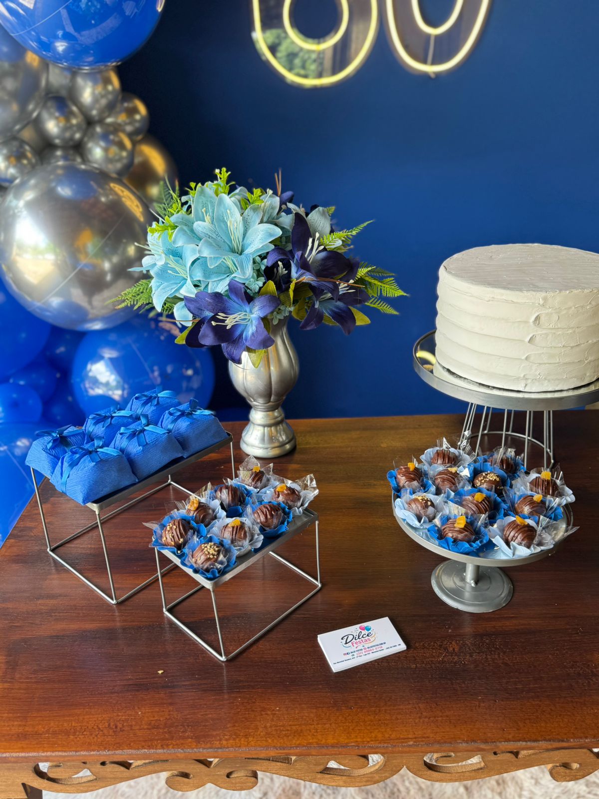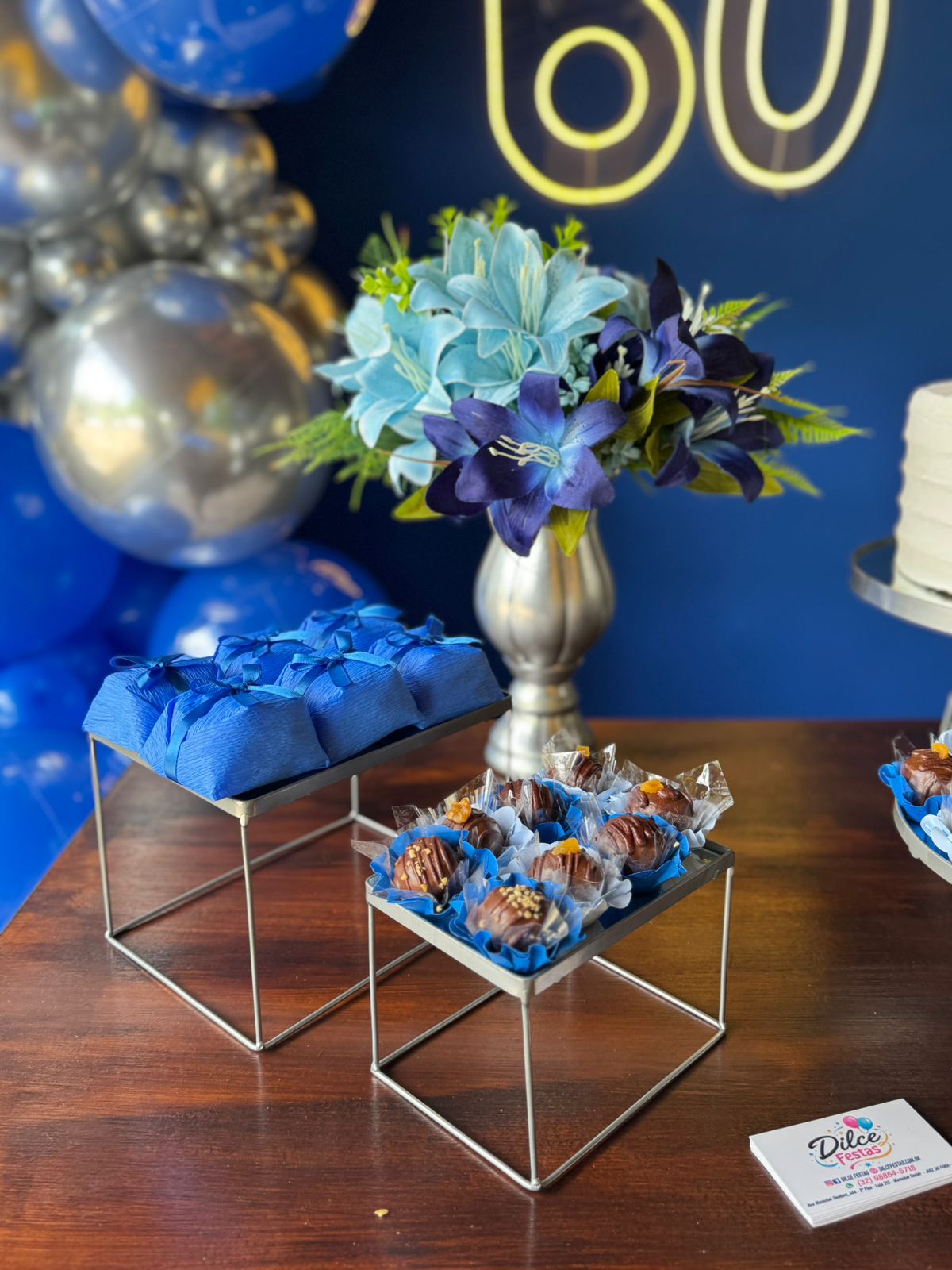 60 Anos Azul Royal e Prata – Adulto – Decoração em Balões com Arco Orgânico