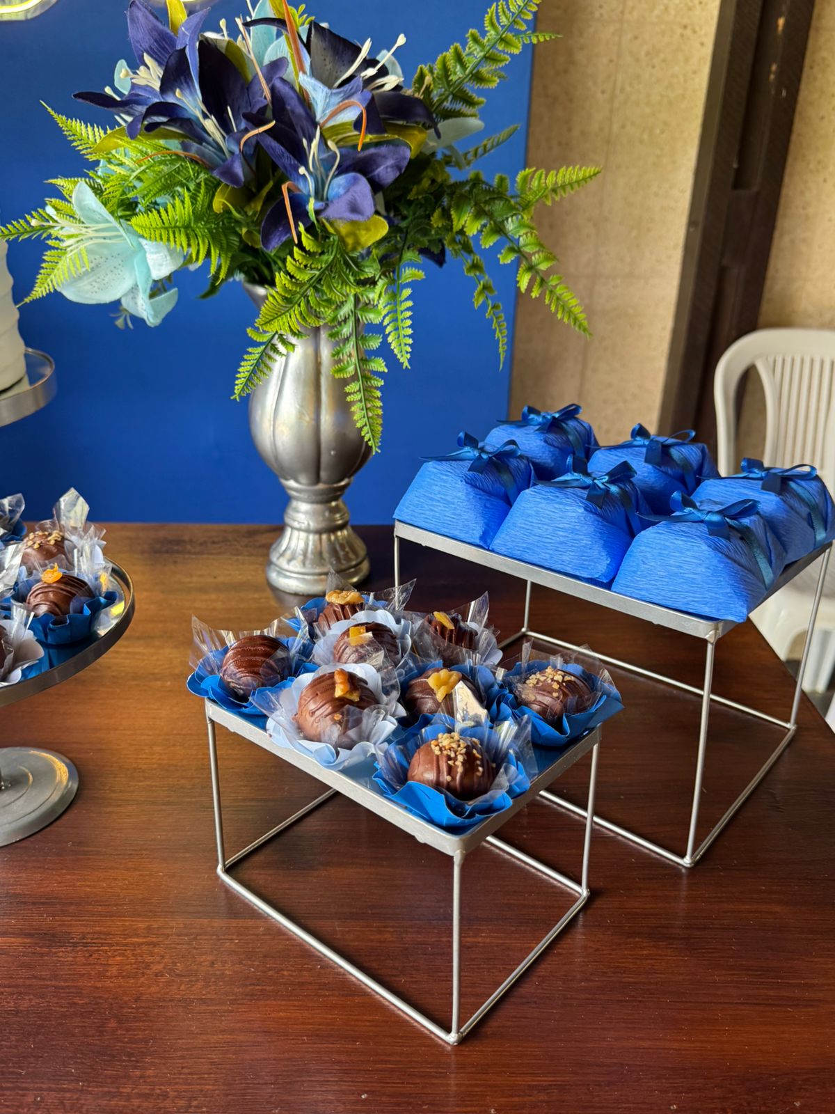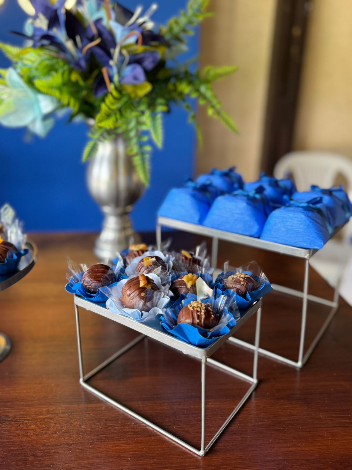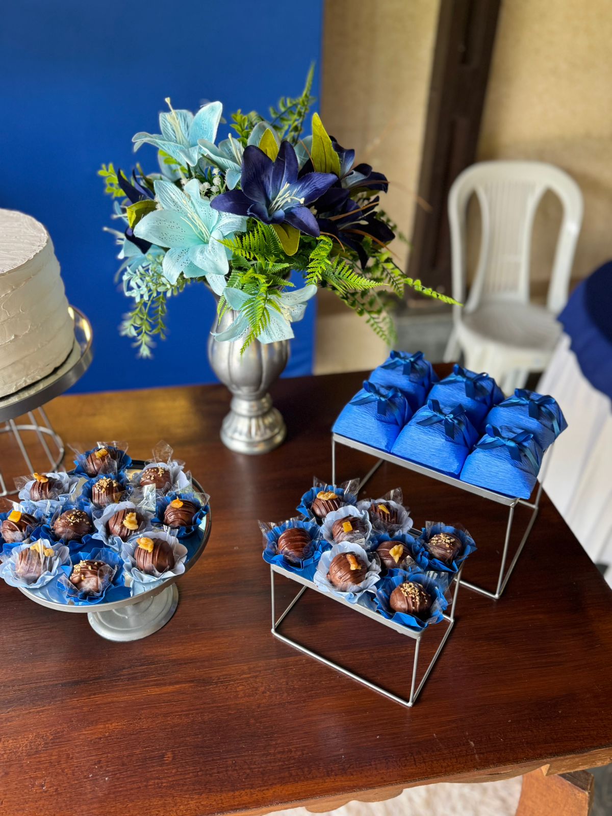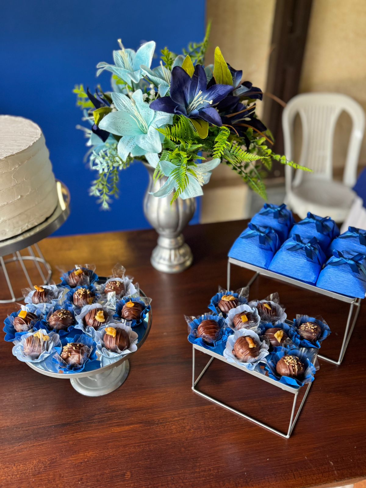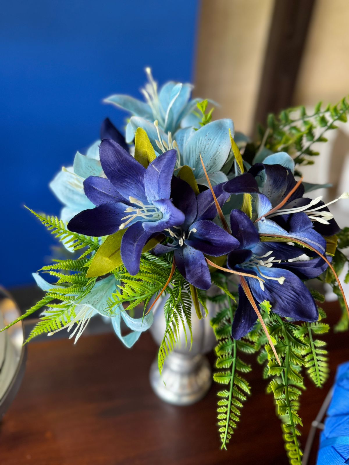 60 Anos Azul Royal e Prata – Adulto – Decoração em Balões com Arco Orgânico