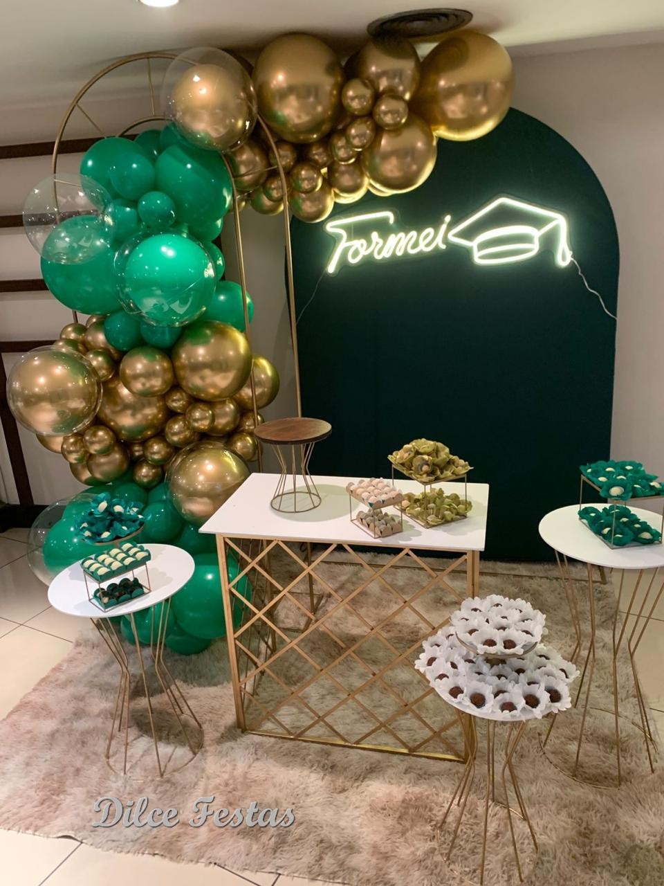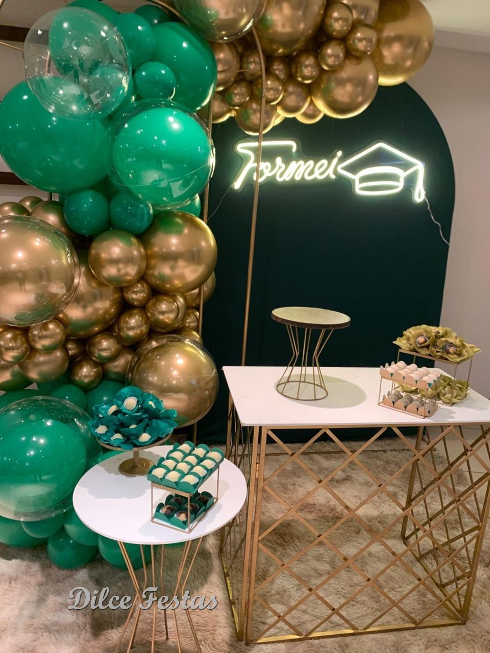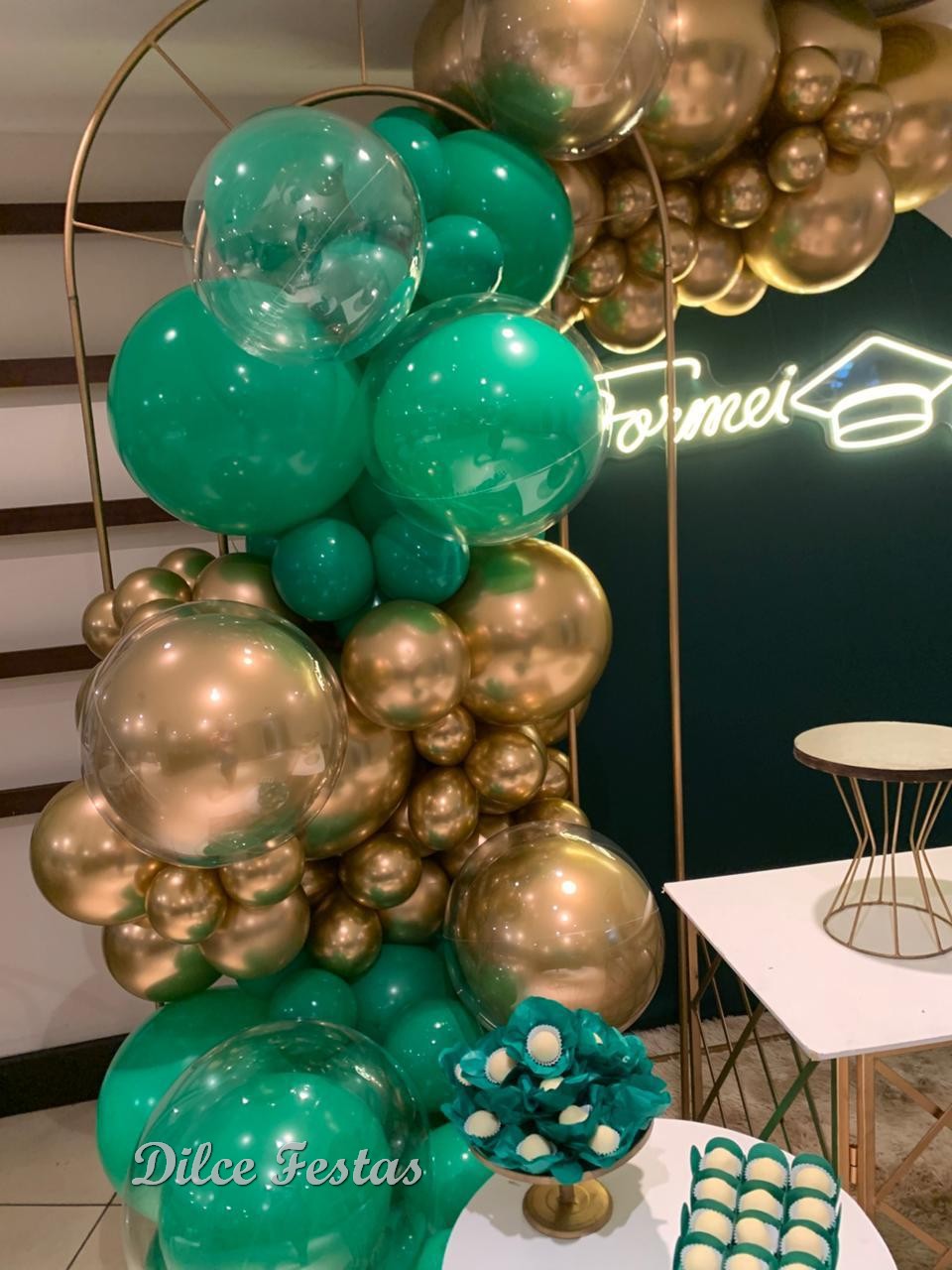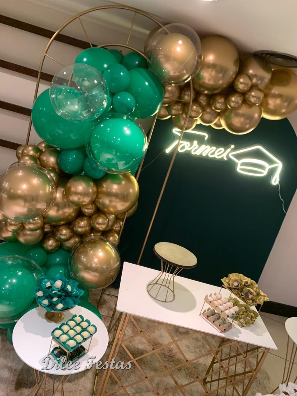 Formatura Azul e Dourado com Capelo e Formei de Led – Trabalho em Balões com Arco Orgânicojaneiro 14, 2026