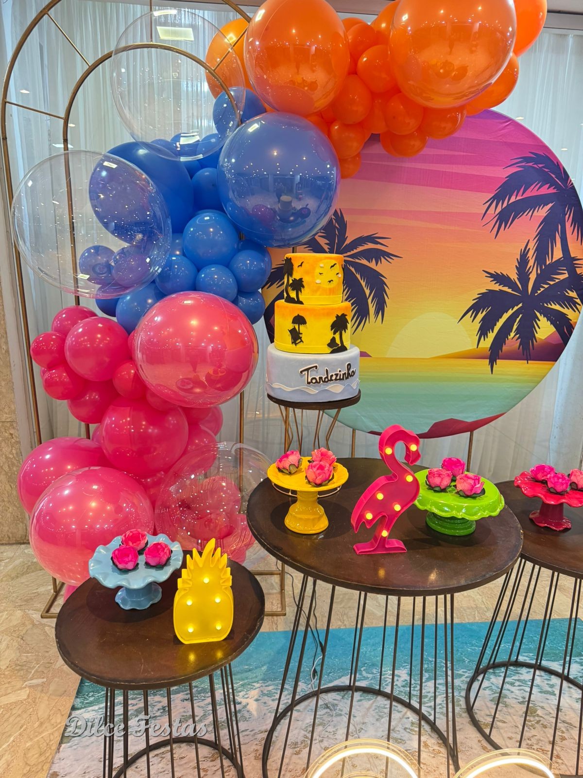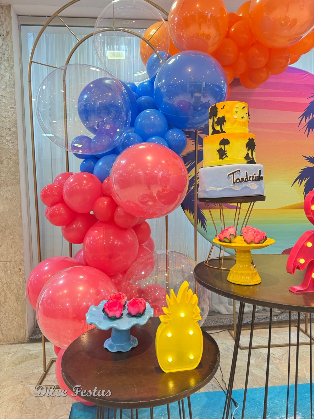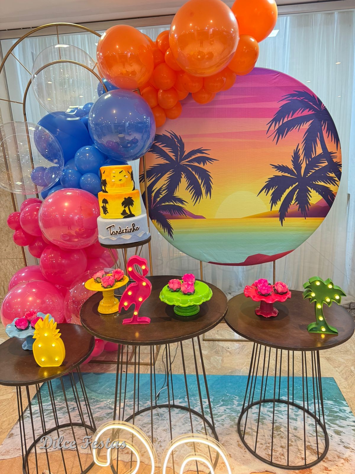 Tardezinha/Tropical Painel Redondo e Portal Álbum V- Trabalho em Balões com Arco Orgânico