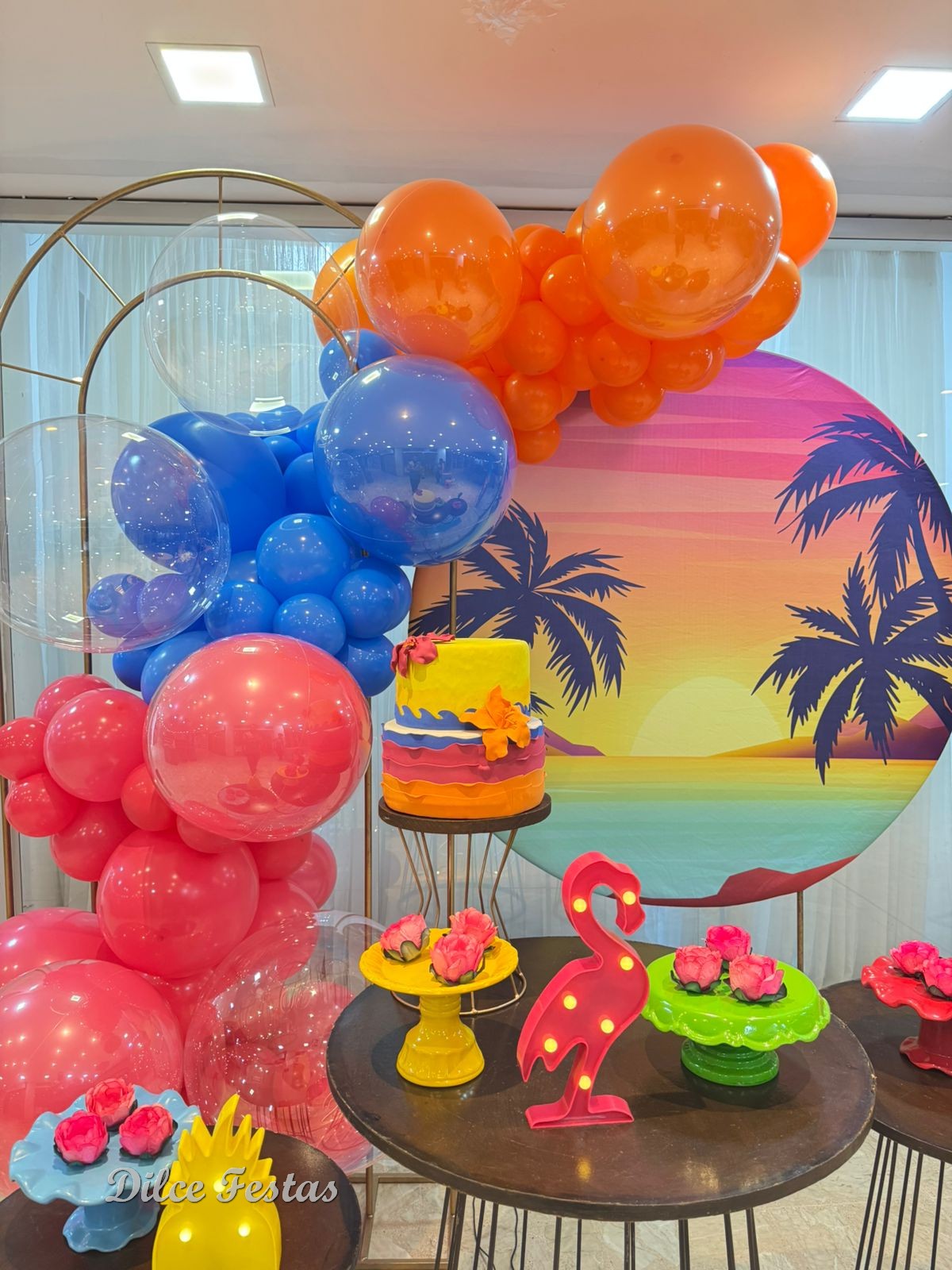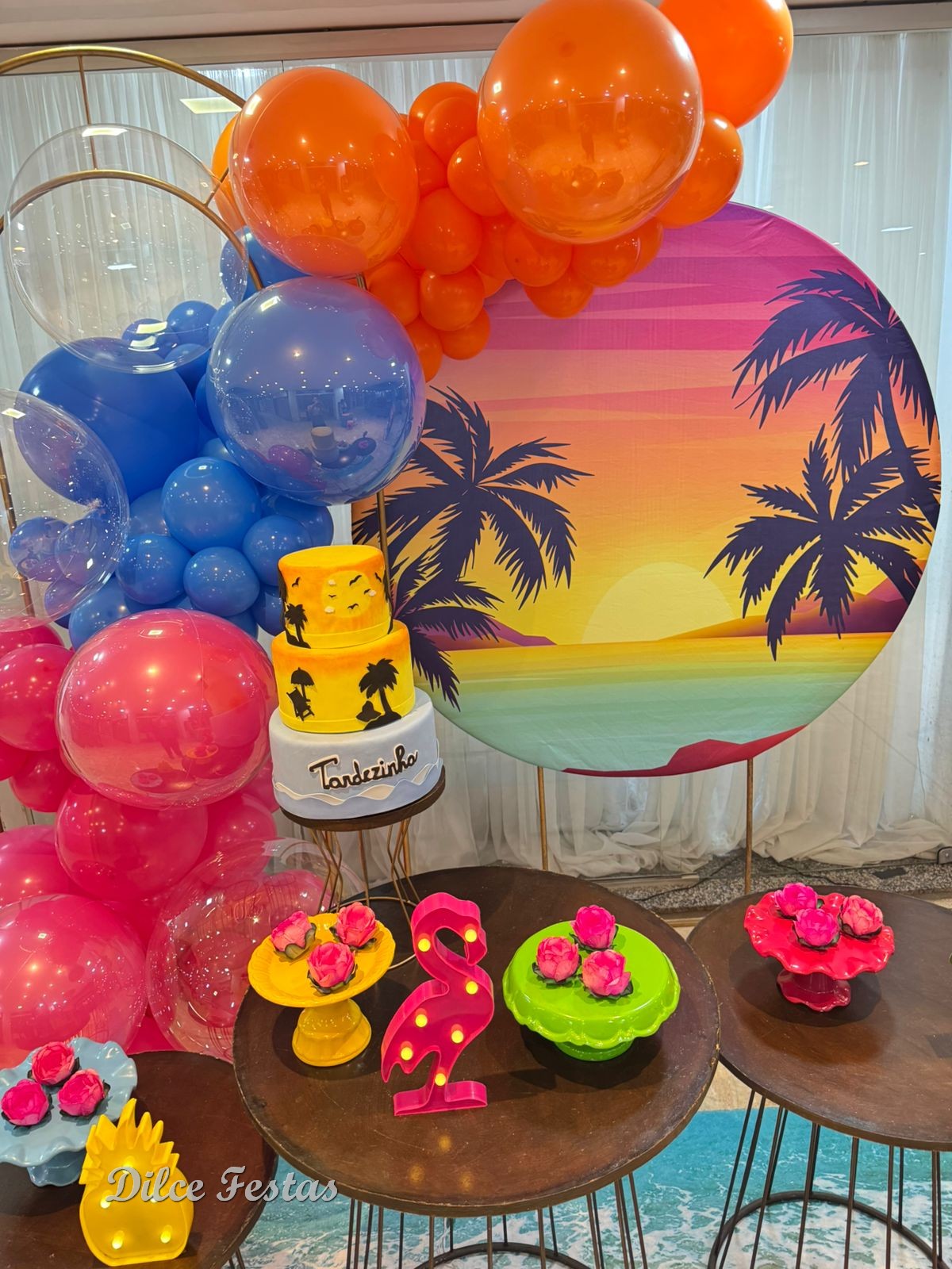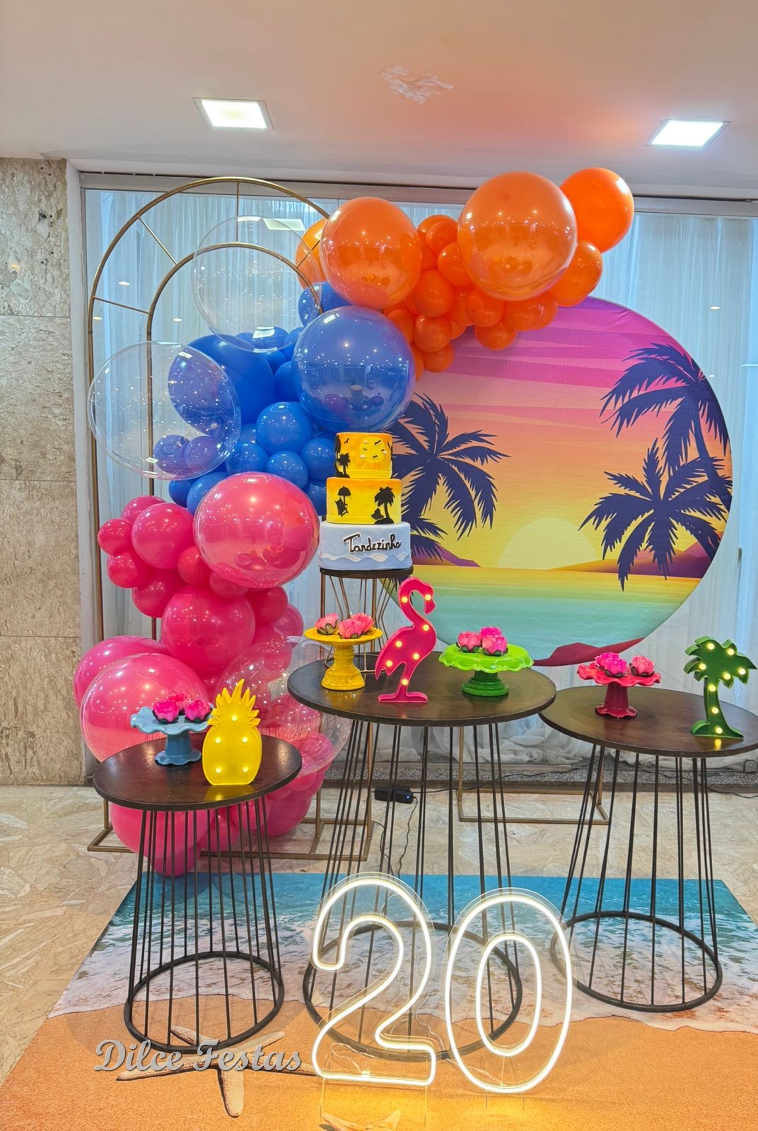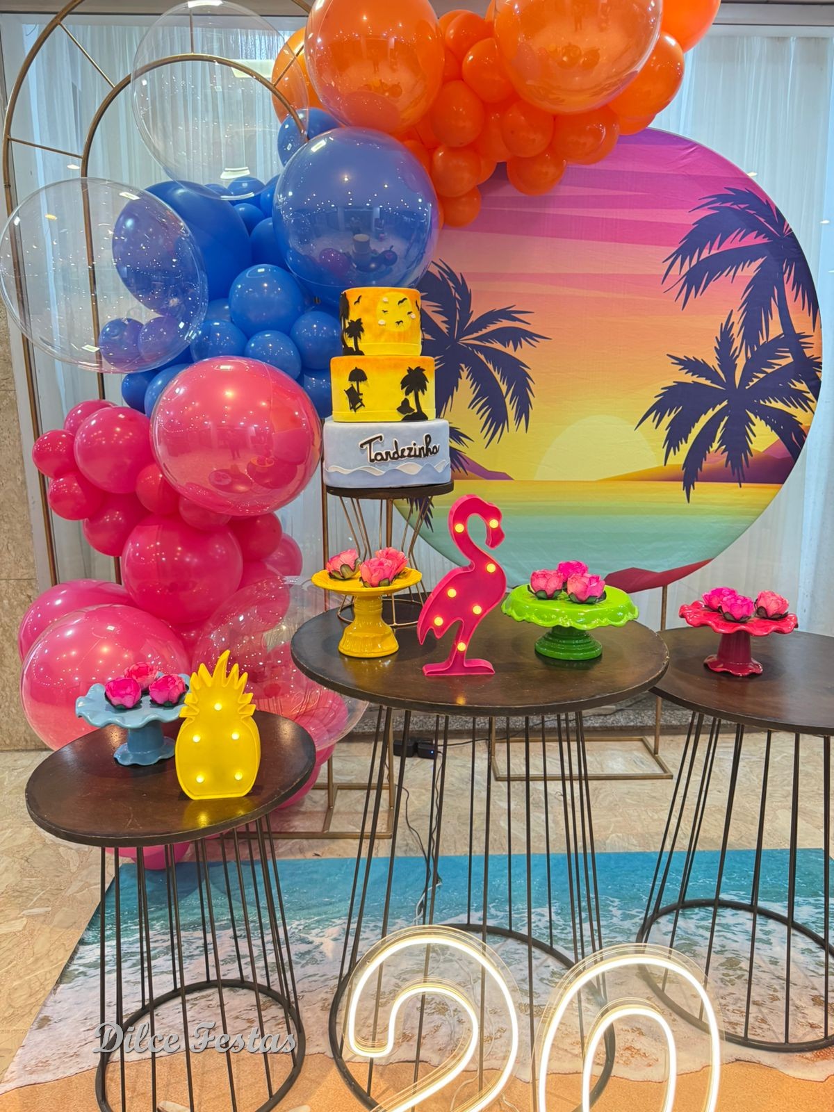 Tardezinha/Tropical Painel Redondo e Portal Álbum V- Trabalho em Balões com Arco Orgânico